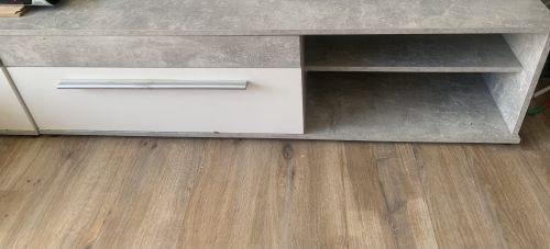 Ich verschenke zwei Teile einer Wohnwand ( Betonoptik) Sie haben Gebrauchsspuren aber trotzdem gut. Maße: 130 x 38 x 40